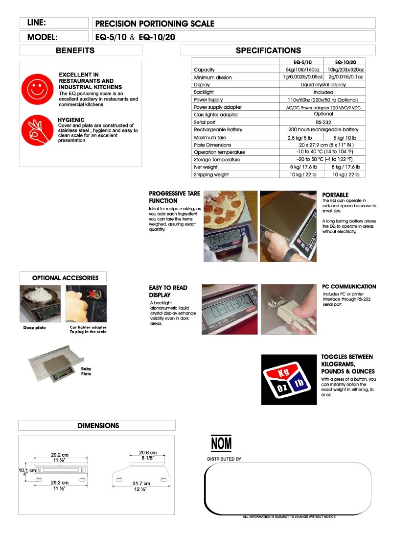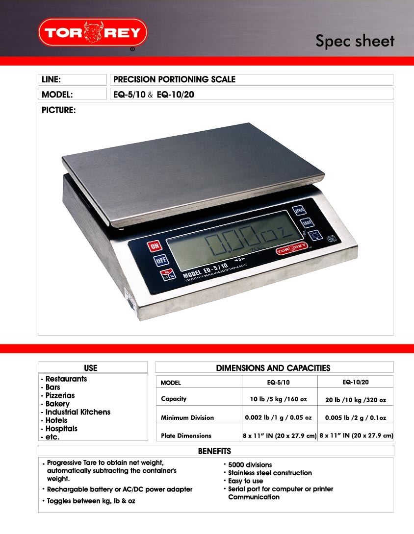- 10 or 20 lb Capacity (5 or 10 Kg)