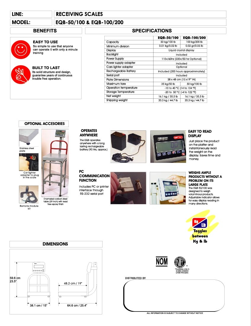 - 50kg x 0.01kg / 100 lb x 0.020lb