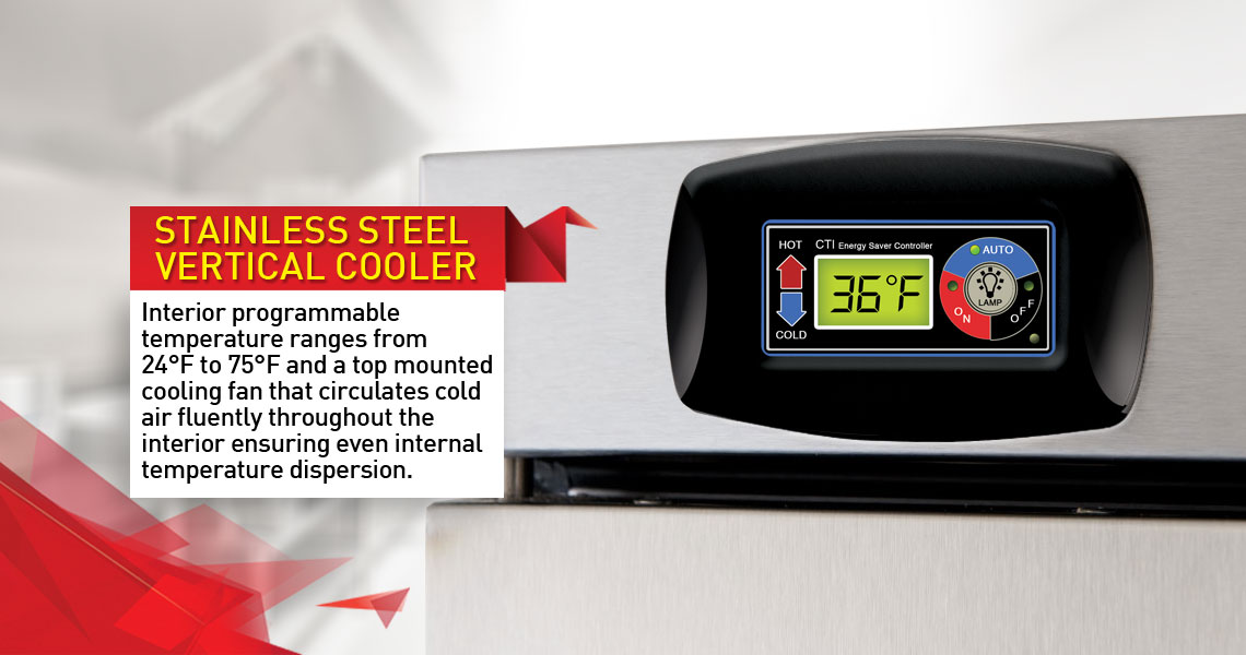- The temperature of our Stainless Steel Vertical Coolers ranges from 24°F TO 75°F.