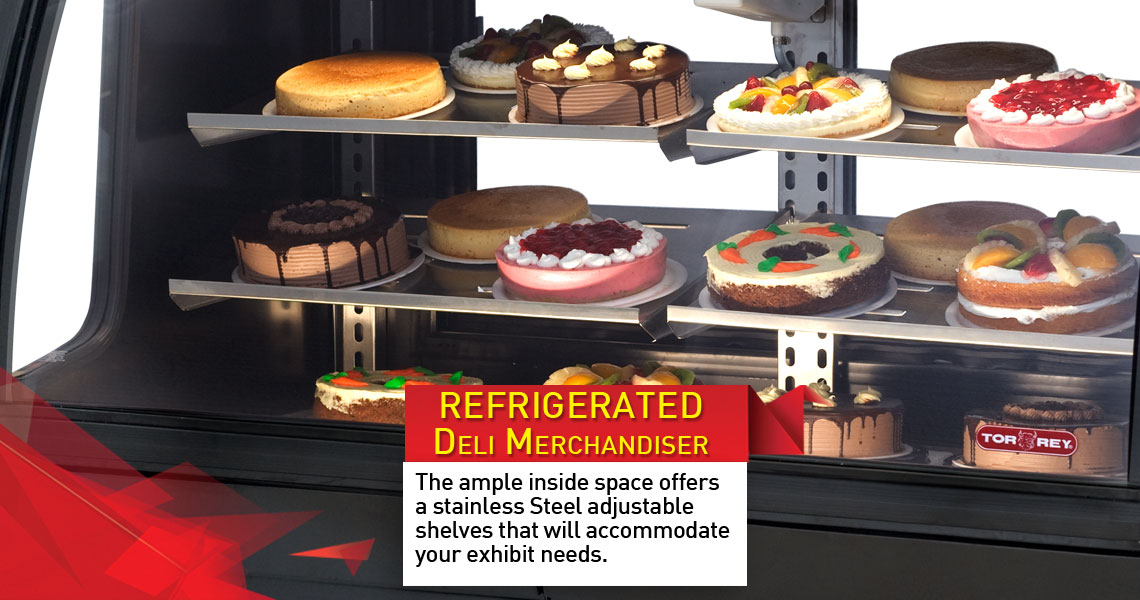 - The TORREY Refrigerated Deli Merchandiser comes with LED Lighting to provide a brighter display of your product while reducing energy consumption.